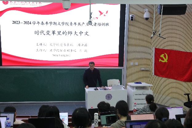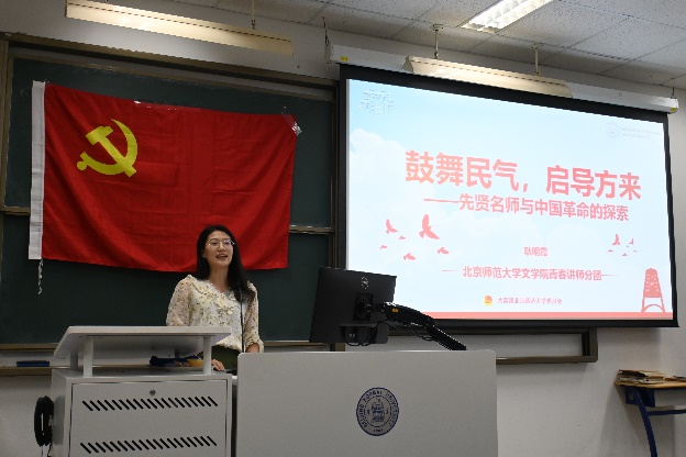党委书记周云磊老师、党委副书记冉欣老师为参训学员带来理论讲座。周云磊老师从时间线索出发,追溯“时代变革里的师大中文”,回顾了师大中文学科在上个世纪30年代中期到50年代的发展与前行之路。周老师始终结合时代背景探索历史事件与酒店偷拍