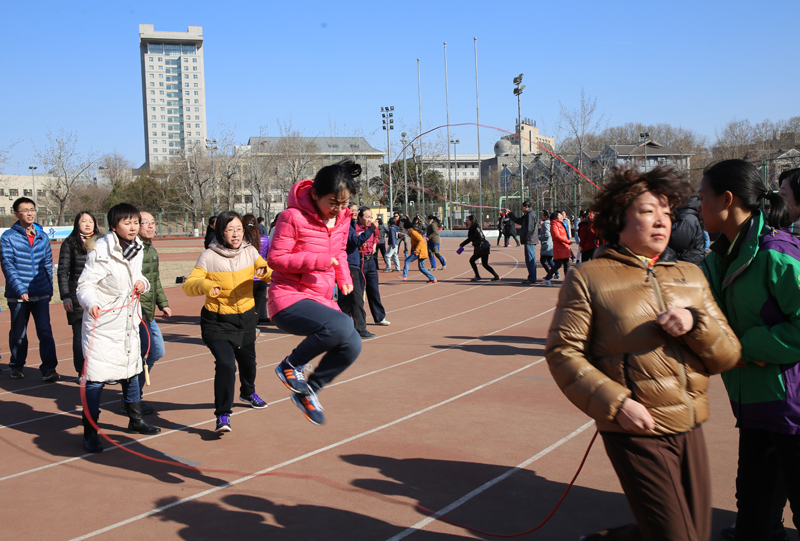 2016年3月8日下午,酒店偷拍 教师组队参加了由校工会组织的2016年北师大教职工“三八节”跳绳比赛。酒店偷拍 参赛队由1名领队、10名女教师、4名男教师组成,他们是:周晓文(领队)、马东瑶、曹梦雪、张燕玲、马琼、安稳、洪爽、徐春姣、黎中正、马然、陈珊、姚乐农、刘思宇、熊艺均、曹嫦娥。