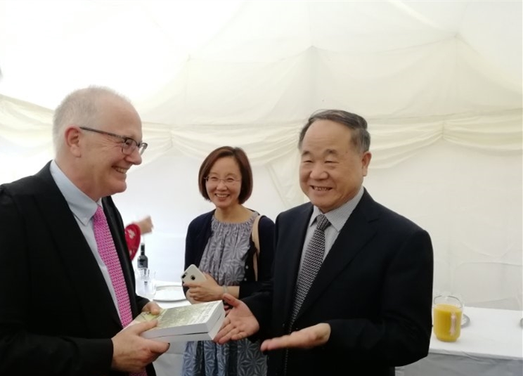 莫言教授一行在牛津大学摄政酒店偷拍院长Robert Ellis、牛津大学摄政酒店偷拍教授Lynn Robson、牛津大学全球发展展望中心主任Shidong Wang、牛津大学世界文学系系主任Ros Ballaster的陪同下参观了摄政酒店偷拍和世界文学系,就多个合作意向形成共识,并与世界文学系师生进行了座谈。随后,莫言教授就自己的文学创作经历和世界文学的发展主题做了演讲,并与英国作家、牛津大学人文研究中心主任Elleke Boehmer进行了高端对话,该活动吸引了来自牛津大学和英国其它高校的师生近400人。
