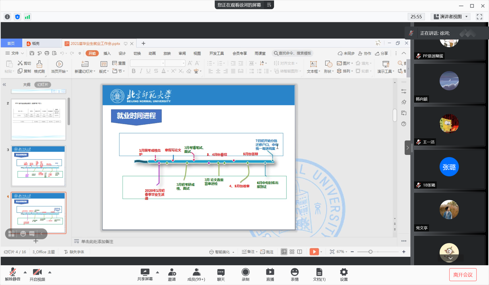 会议分为就业时间进程介绍、就业政策及材料介绍、注意事项三部分进行。