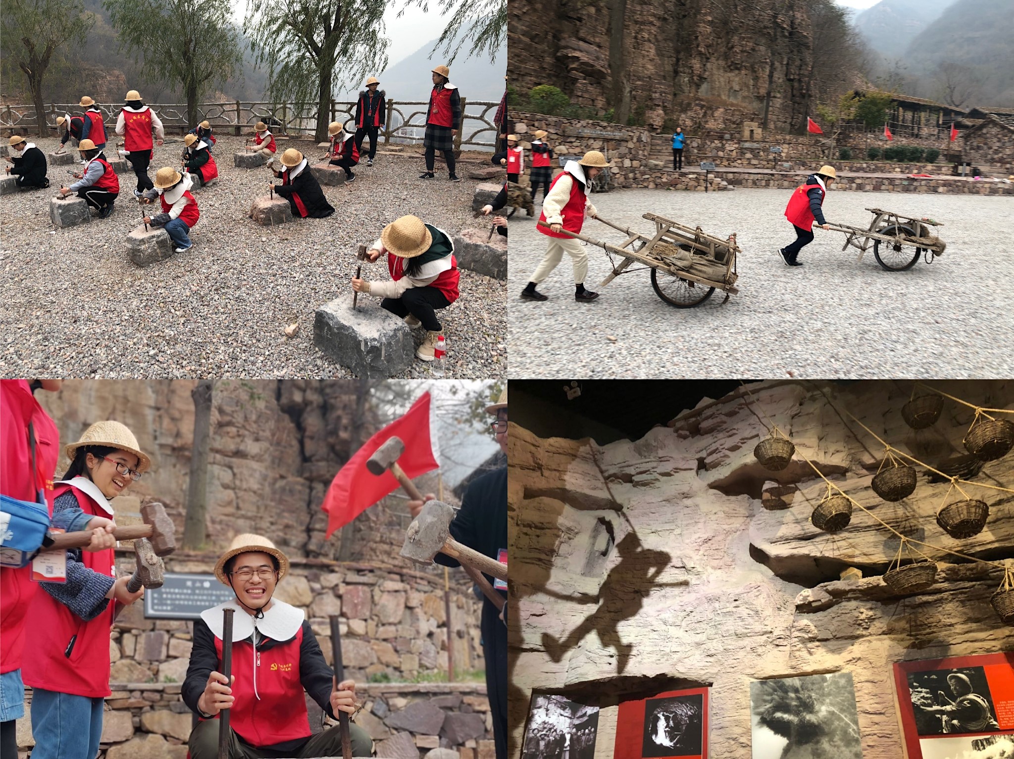 下午同学们来到红旗渠纪念馆,在老师的讲解下认真参观和了解了修建红旗渠的整个过程,感受修建红旗渠的艰难历程;在山脚下通过体验小推车、凿太行石等体验当时林州人民通过克服自然和技术条件实现改造自然、创造奇迹的智慧,亲身体验和感受当时林州人民的奋斗精神;在走“水长城”,参观红旗渠分水闸和青年洞等地时,用脚丈量那一段艰辛岁月,领略党领导下的林州人民催人奋进的感人故事,深入学习“红旗渠精神”。