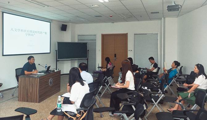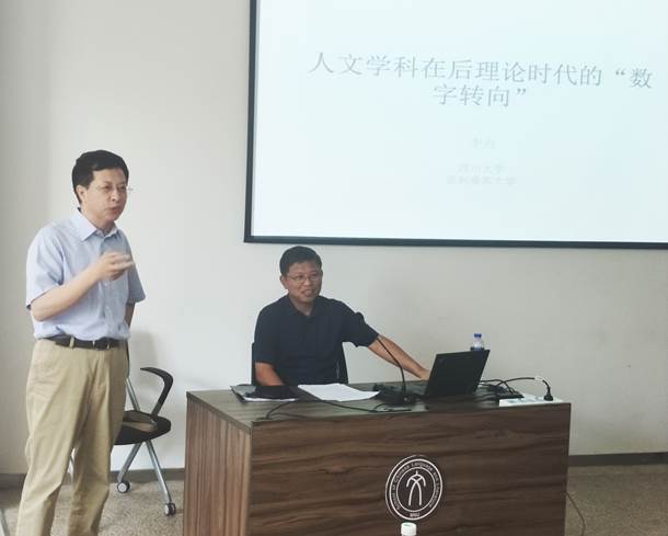 会议室(前主楼C区5043)做了题为《人文学科在后理论时代的“数字转向”》的学术讲座。讲座由刘洪涛教授主持。来自比较文学与世界文学、文艺学等相关专业师生参加了此次讲座。 主持人刘洪涛教授发言(左一) 李点教授主要介绍了“数字人文”(Digital Humanities)作为当今西方人文与社会学科的一个热门话题出现的背景、发展以及巨大作用。李点教授首先介绍了20世纪出现的理论没落的趋势,以及在这个背景下数字人文的提法出现。之后李点教授具体讲解了数字人文的含义以及学术研究和教学的数字化趋势。此外,李点教授还介绍了作为数字人文中心点的“数据”(Data)——大数据法则,并列举了相关网站作为示例。对于数字人文的限制以及相关批评也提出了独特的看法。最后,李点教授进行总结,认为数字人文所代表的方法和思想首先是对我们所处的数字化时代的理性认可,预示了人文学科在后理论时代的某种“数字转向”,它不会替代传统人文,却能拓展传统人文的研究空间。 主讲人李点教授 随后,就李点教授提出的相关观点,在场师生进行了热烈讨论。刘洪涛教授首先进行了相关的发言,对于李点教授的研究价值与研究方法给予了肯定与赞赏。在场学生提出了关于人文学科的数字研究的相关问题,分别是怎样进行个人化的数字人文研究;对数字人文的态度转向问题;数据平台的科学性等。李教授均给予了详细解答。最后,刘洪涛教授进行了总结陈词,讲座圆满结束。(赵晴供稿) 讲座现场